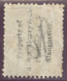 The example below is PP98 a 6d. violet (SG108 or J76) Plate 8 with a Property of A. & S. Henry & Co. Portland-St., Manchester. underprint, reading upwards.