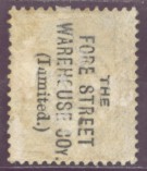 The example below is PP79A a 1 1/2d. Venetian red (SG 167 or K4) with a The Fore Street Warehouse Coy. (Limited)type 24A underprint, reading downwards.