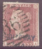 The example below is PP111 a 1d. rose-red (SG 40 or C10) Plate 47 with an Holloway 244 type 34 overprint.