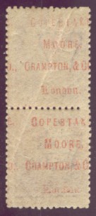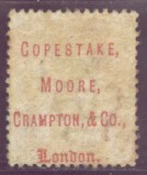 The example below is PP23 a 1d. lake-red (SG 43 or G1) Plate 111 with a Copestake, Moore Crampton & Co., London type 12 underprint.