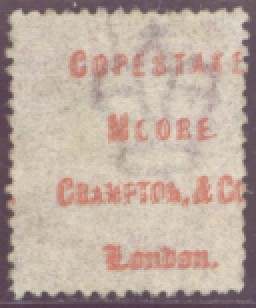 The example below is PP23a a 1d. lake-red (SG 43 or G1) Plate 111 with a double Copestake, Moore Crampton & Co., London type 12 underprint.