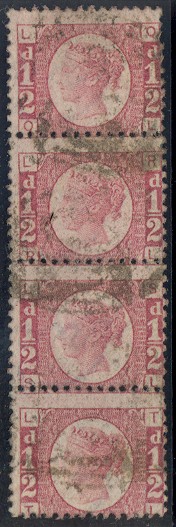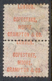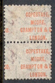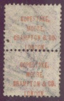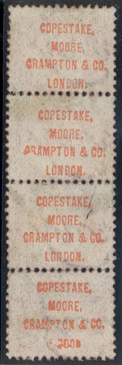 The examples below are all PP27, 1/2d. rose-red (SG 48 or G4) multiples with a Copestake, Moore Crampton & Co., London type 13 underprint.