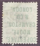 The example below is PP33a a 1s. green (SG 150 or J112) Plate 12 with an inverted Copestake, Moore Crampton & Co., London type 14 underprint.
