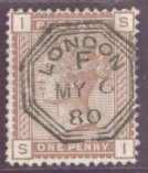 The example below is PP34 a 1d. Venetian red (SG 166 or K3) with a Copestake, Moore Crampton & Co., London type 14 underprint.