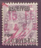 The example below is a 1d. lilac Die II, 16 dots (SG 173 or K8) with the RECEIVED FOR J. & C. Boyd & Co. overprint.
