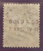 The example below is PP12 a 1d. rose-red (SG 42 or C12) Plate 50 with the J. & C. Boyd & Co. type 5 underprint.