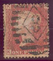 The example below is PP2 a 1d. red (SG 43 or G1) Plate 203 with the Beddoe, Hulbert & Co. underprint.
