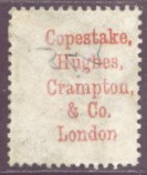 The example below is PP56 a 1d. Venetian red (SG 166 or K3) with a Copestake, Hughes Crampton & Co., London type 18 underprint.