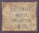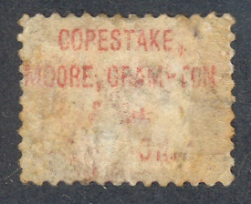 A number of perfins also exist that have been identified as belonging to this firm - at least one for each of the incarnations mentioned above. A number of stamps exist with both an underprint and the C3400.01 perfin. It is believed the perfin was applied to existing stocks of stamps so that the "box" part of the perfin went some way to obliterate the name of the ex-partner "Moore". Jennings lists this as occurring on two stamps, these being PP29 and PP34. I have been lucky enough to find examples on PP29 Plate 20, PP34 but also on PP24 Plate 3.