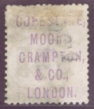 The example below is PP30 a 6d. violet (SG 109 or J77) Plate 9 with a Copestake, Moore Crampton & Co., London type 14 underprint.