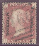 The example below is PP58 a 1d. lake-red (SG 43 or G1) Plate 130 with a Wm. Dawbarn & Co., Liverpool type 19 overprint, reading downwards.