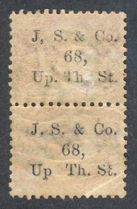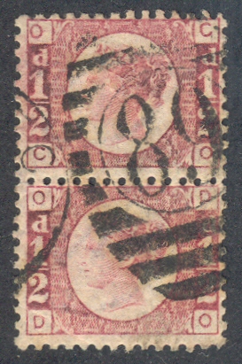 The example below is a vertical pair of PP178 a 1/2d. rose-red (SG 48 or G4) Plate 11 with a J. S. & Co. 68, Up. Th. St. type 51 underprint.