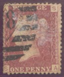 The example below is PP125 a 1d. lake-red (SG 43 or G1) Plate 107 with a Linoleum Compy. (Limited). type 39 underprint reading upwards.