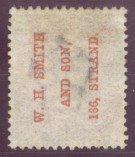 The example below is PP187 a 1d. lake-red (SG 43 or G1) Plate 147 with the W. H. Smith and Son, 186 Strand type 55 underprint, reading upwards.